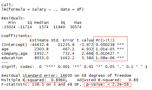 fit <- lm(salary ~ .,data = df) # 用.表示数据框中的其余变量