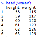 同样,我们仍然使用R中自带的women数据集,来看一下数据样式: