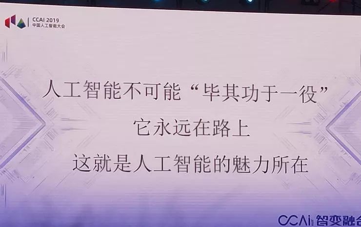 人工智能有个特点,我今天在报告里面主要传达这么个特点:大家不能指望人工智能一出来就毕其功于一役。它永远在路上,这就是人工智能的魅力所在。