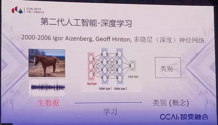 第二代人工智能,一个最重要的成果就是深度学习。也就是说,第一代人工智能提出来,如果能够很好地利用人类的知识,就可以建立很好的人工智能系统,如果我们有充分数据,也有可能建立起有用的人工智能的系统。