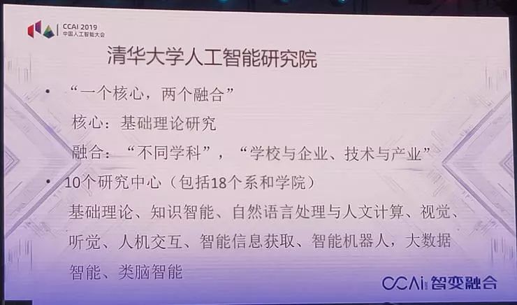我们成立人工智能研究院就是想担负这个责任,用什么办法解决这个问题?就通过一个核心和两个融合:一个核心是加强基础研究,必须从理论上去突破。我们刚才讲了,深度学习,所以有这么多毛病,这个原因是它的原理开始的,它的原理就不对,不是用人类一样的原理。所以我们必须更好地去解决它,才有可能往前迈进。用的方法主要是两条:一个是多学科交叉,必须多学科交叉,跟心理学、神经科学。大家知道,第一个模型是心理学家提出来的,第二个模型是神经科学家和数学家提出来的,都不是计算机的人提出来的,必须要加强学科交叉,应用结合。
