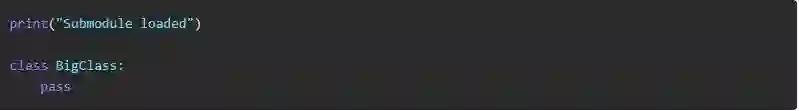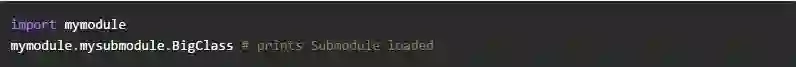 注意,尽管我们在本例中导入了mymodule,但是包含BigClass的子模块直到我们调用它时才进行加载。
