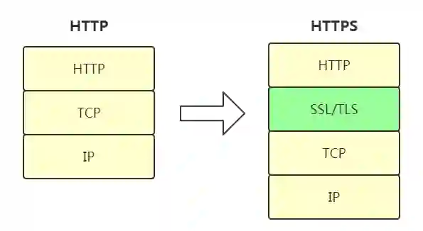本文的标题是HTTPS,但是到目前为止HTTPS只字未提!其实HTTPS=HTTP+SSL,在HTTP层和TCP之间加了一个SSL/TLS层,如下图: