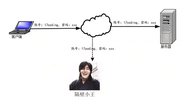 对称加密算法的加密和解密都是用同一个密钥。在一定条件下,对称加密可以解决数据传输安全性的问题。比如我在登录某个网站的时候,需要填写账户名和密码进行登录,客户端把登录的表单信息进行对称加密后再传输,这时候就算小王截获数据包,他也无法获取数据的内容,因为数据已经被加密了。但是服务器收到数据后也是一脸懵逼,你发来的加密的数据包服务器也不知道解密的密钥!