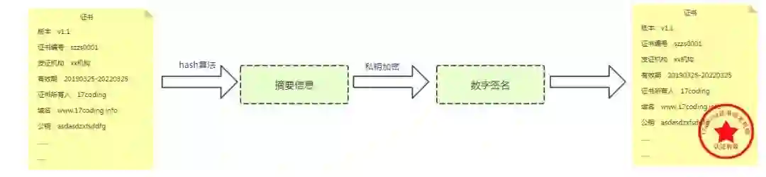 在实际生活中签名、盖章操作是实实在在的动作,作用在具体某个物体上的!但是我们的数字证书本身就是虚拟的,怎么去给一个虚拟的证书签名盖章呢?数字签名又是什么机制呢?