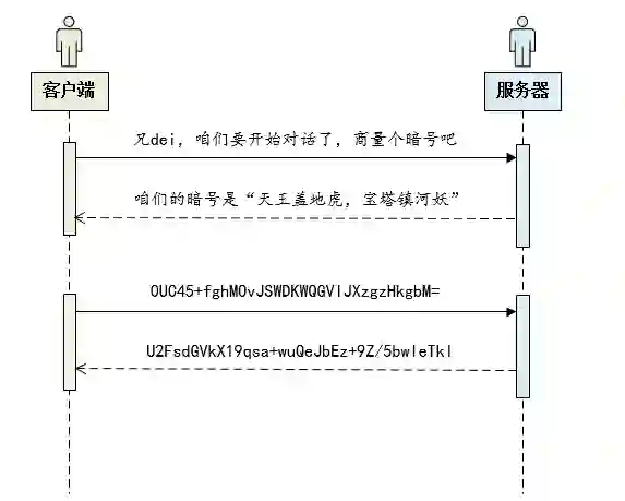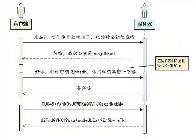 那是不是客户端与服务端在通信之前应该先协商密钥呢?客户端可以通知服务器需要开启数据传输了,然后服务器告诉客户端,咱们以后用xxxx这个密钥进行加密解密吧!