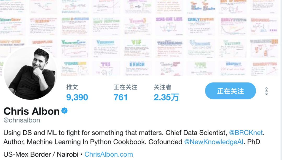 这些小抄表来自机器学习网红Chris Albon博士。Chris 是一位很有热情的机器学习从业者、数据科学家,也是初创公司NewKnowldgeAI的联合创始人。