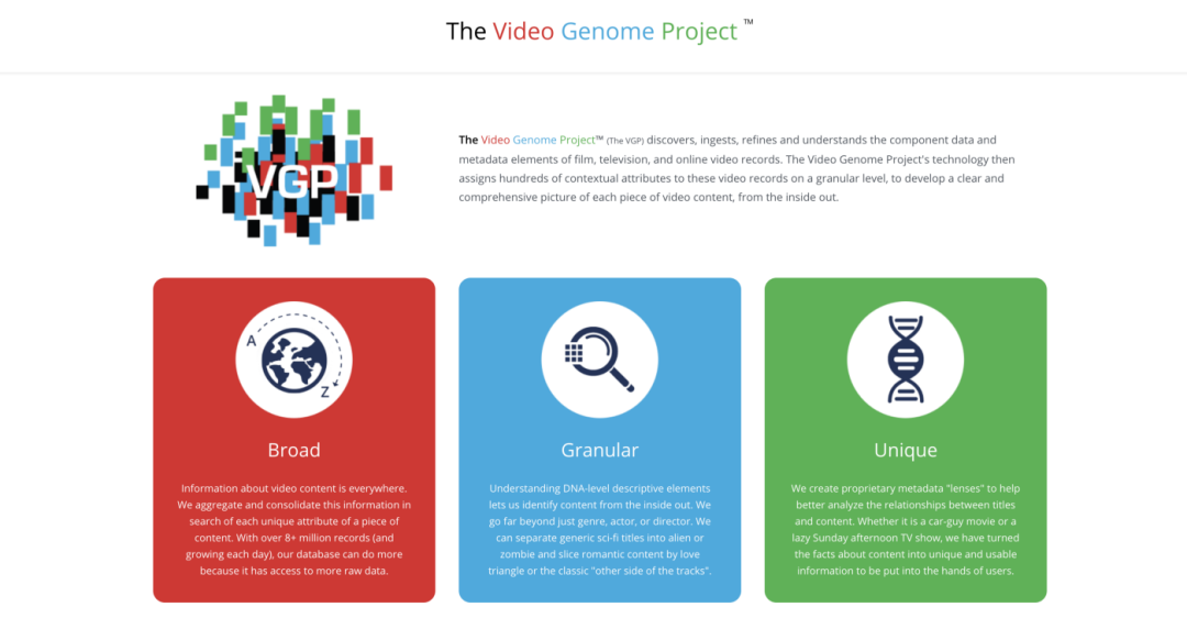 在海量数据的支撑下, Video Genome项目拥有了DNA级别的细致洞察力