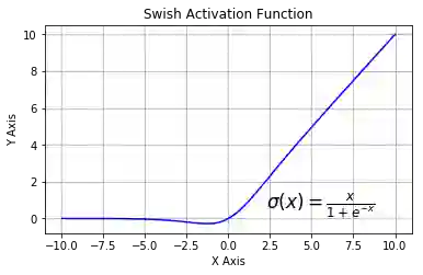 该函数又叫作自门控激活函数,它近期由谷歌的研究者发布,数学公式为: