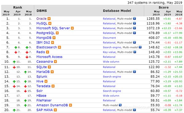 DB-Engines 数据库流行度排行榜发布了5 月份的数据,前六名的排名“千年不变”,分别是:Oracle、MySQL、Microsoft SQL Server、PostgreSQL、MongoDB 和IBM Db2。而其中,MongoDB以比去年同期超出65.96分的成绩继续雄踞榜单前五,这个增幅在全榜仅次于PostgreSQL的77.99,而其相对于4月份的6.10分的增长也是仅次于微软SQL Server排名全榜第二。