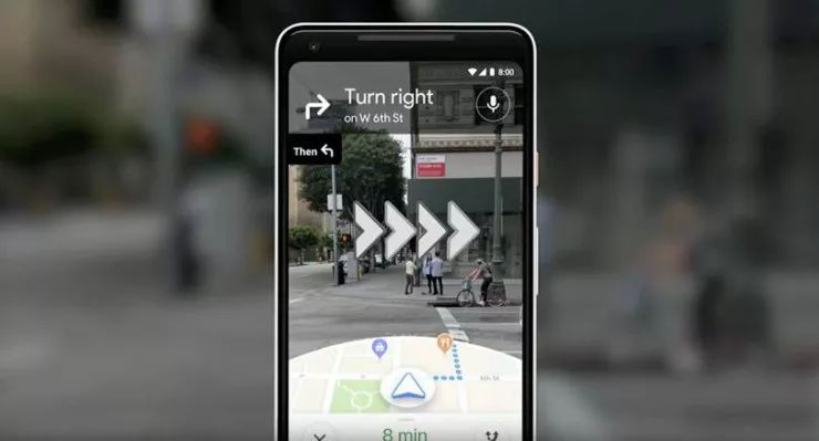 结合摄像头,谷歌地图玩出了一些新花样。比如一个增强版的谷歌地图简直是路痴的福音。当你打开一个照相机APP时,可以加载街景,实时指出前进方向。谷歌称之为视觉定位系统,可以识别面前的建筑物和地标。