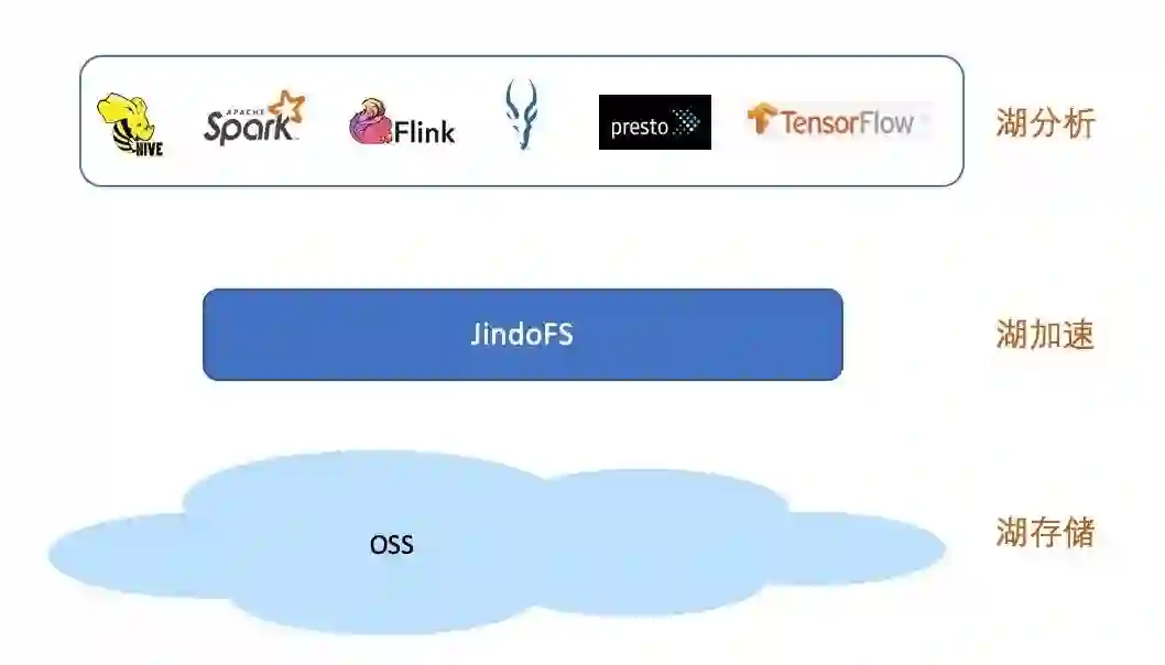 在数据湖架构里,湖存储(HDFS,阿里云OSS)和湖计算(Spark,Presto)都比较清楚。那么什么是湖加速?大家不妨搜索一下…(基本没有直接的答案)。湖加速是阿里云EMR同学在内部提出来的,顾名思义,湖加速即为数据湖加速,是指在数据湖架构中,为了统一支持各种计算,对数据湖存储提供适配支持,进行优化和缓存加速的中间层技术。这里面出现较早的社区方案应该是Alluxio,Hadoop社区有S3A Guard,AWS有EMRFS,都适配和支持AWS S3,Snowflake在计算侧有SSD缓存,Databricks有DBIO/DBFS,阿里云有EMR JindoFS,大体都可以归为此类技术。