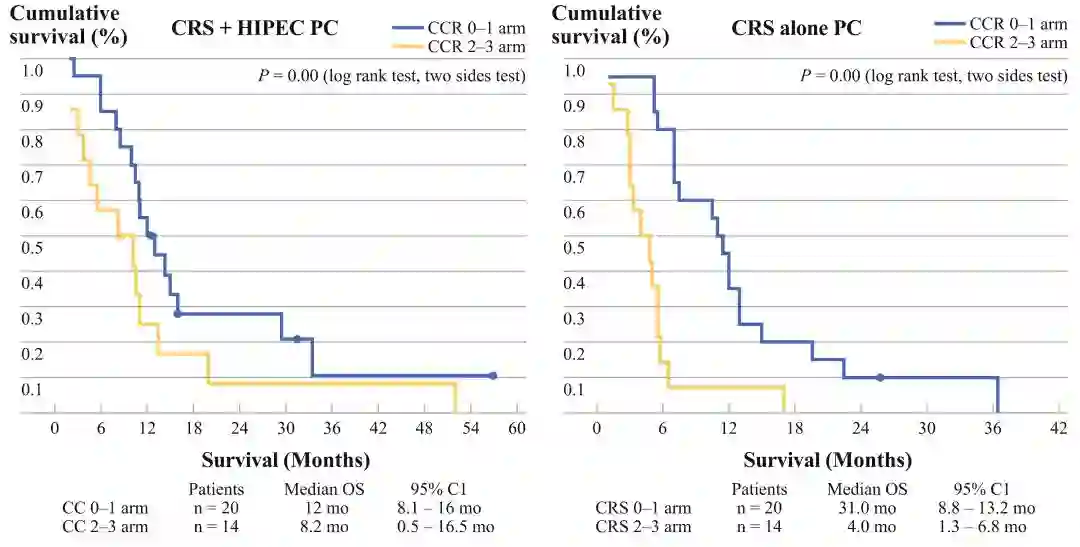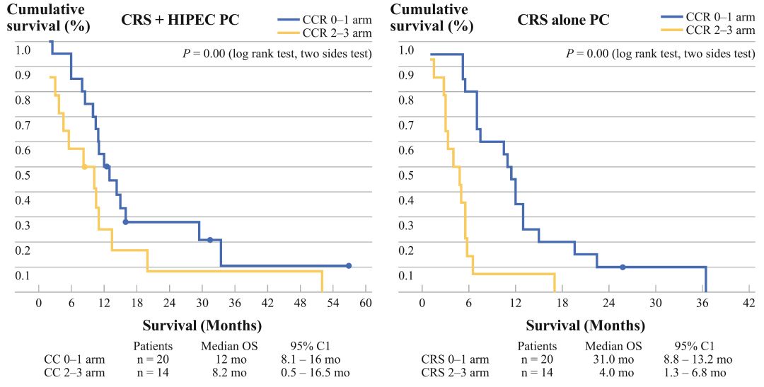 图2. 在CCR 0~1亚组的胃癌腹膜转移患者有更佳的生存预后(Yang X J, et al. Ann Surg Oncol. 2011)