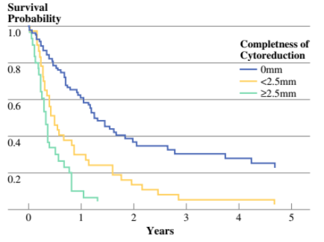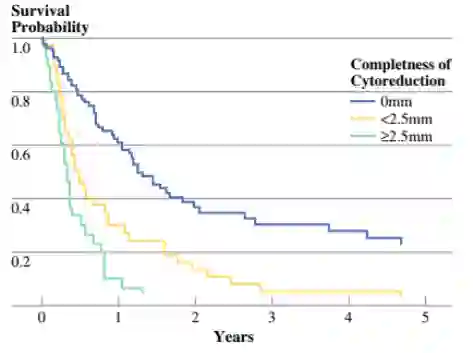 图3. 不同CRS的完全度的生存曲线(Glehen O, et al. Ann Surg Oncol. 2010)