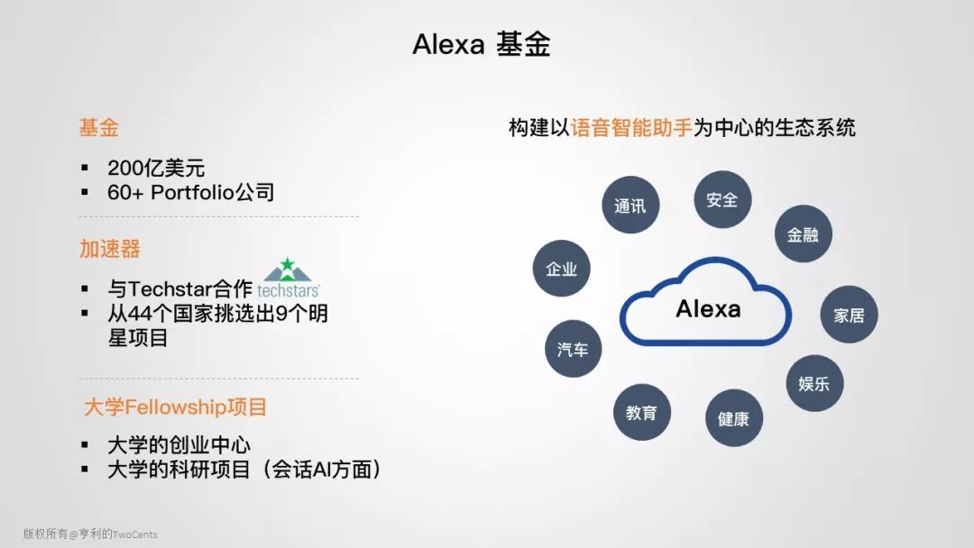 除了基金,Alexa 跟知名加速器 Techstars 合作,孵化以语音技术驱动的创业公司。据了解,Amazon 与 Techstars 向每家加速器创业公司投资 12 万美元,换取 6% 的普通股。另外,基金还与大学,如卡内基梅隆 CMU、Johns Hopkins、南加州大学以及加拿大的 Waterloo 等,合作创办 fellowship 项目,争取从更早期阶段孵化语音 AI 技术。