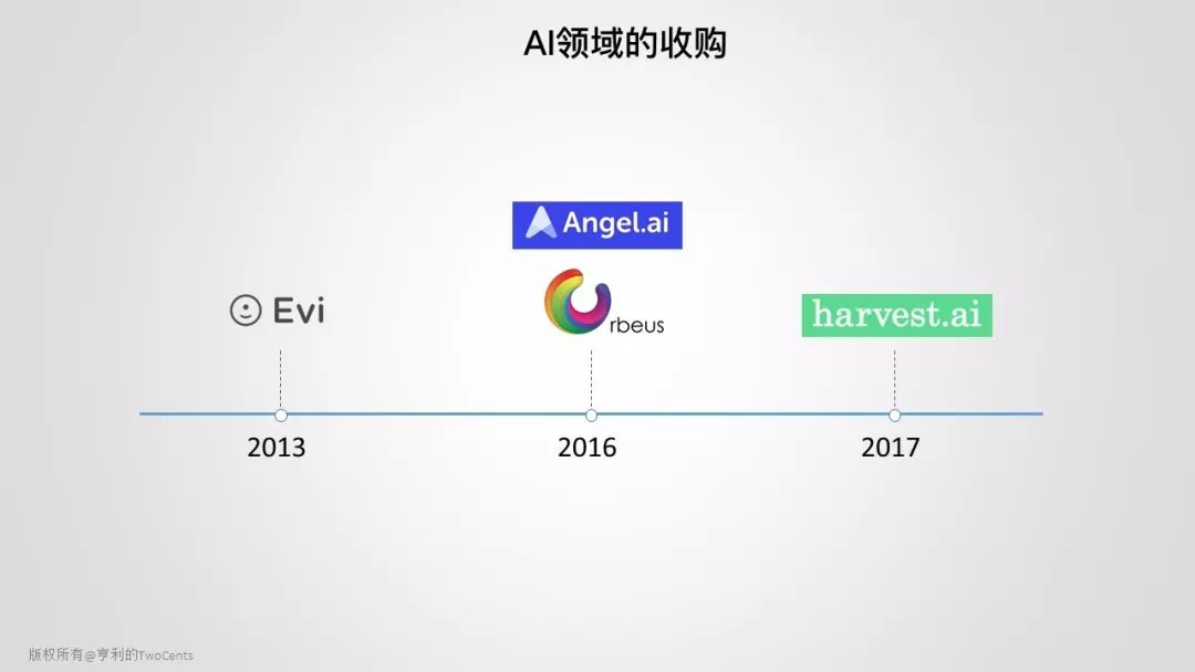 相对其他巨头,Amazon 在 AI 领域的收购稍显保守,但 Amazon Alexa 基金就非常 aggressive,后面会作介绍。2013 年,Amazon 收购了英国公司 Evi Technology,该公司当时开发了一款跟 Siri 类似的语音助手 Evi。据了解,Amazon Echo 的语音技术就来自于 Evi。
