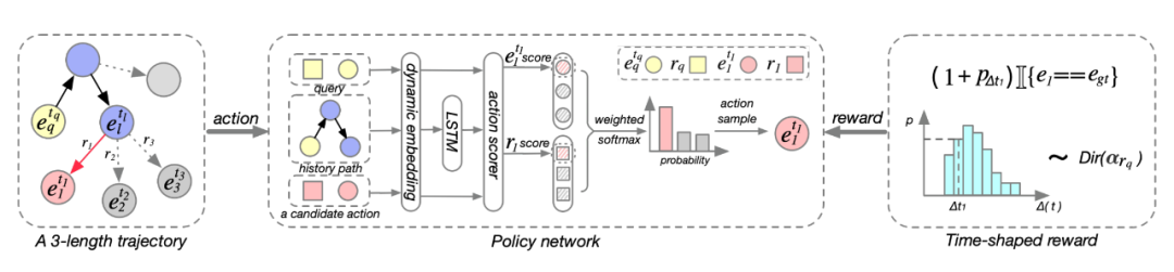 之一进行评分的过程。TITer 根据从所有候选分数计算的转换概率对动作进行采样。当搜索完成时,时间形奖励函数将根据估计的狄利克雷分布