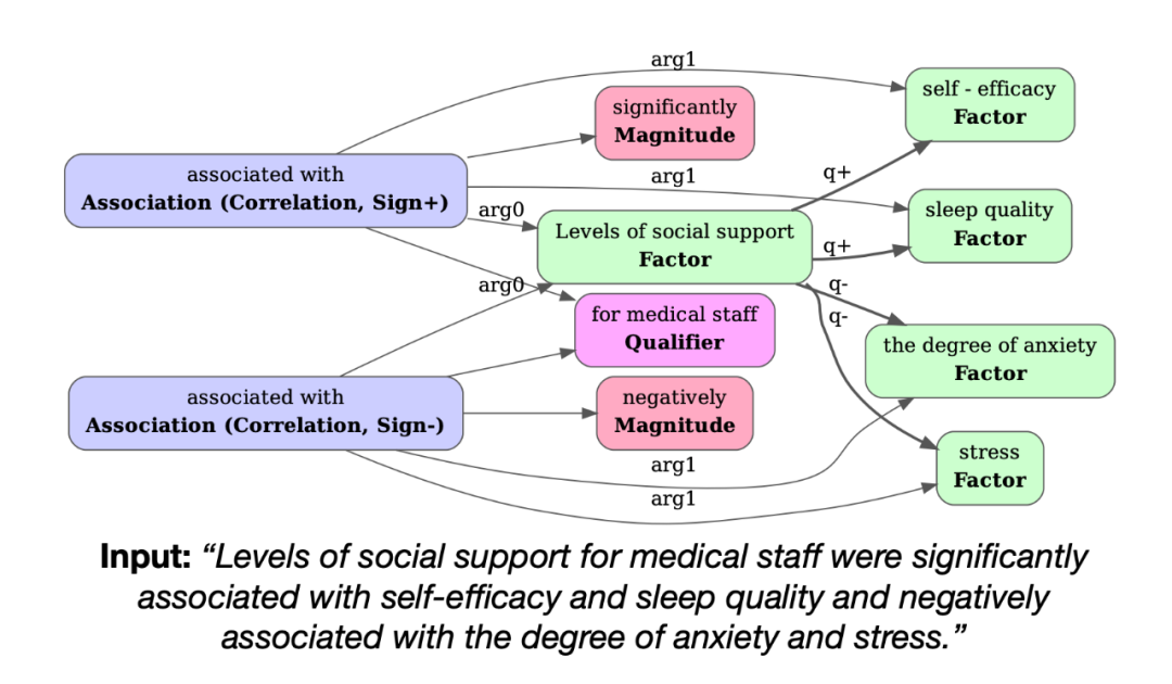 属性(Attributes)是多标签细粒度注释(在括号中显示),其中零个或多个可能适用于任何给定实体。共包括以下几种属性:Causation 表示对其构成因素的因果关系。Correlation 表示对其构成因素的相互依赖。Comparison 表达了与参考框架的关联。Sign+ 和 Sign- 表示高/低或增加/减少的因子值。Test 表示统计测量。Indicates 表示预测关系。