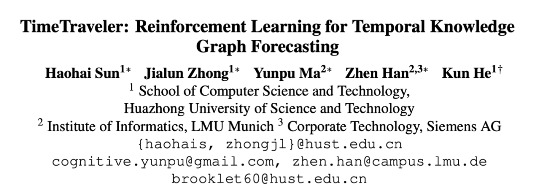 为了应对这些挑战,本文作者提出了一种用于预测的强化学习方法。具体来说,“时间旅行者”(TIme Traveler, TITer)在历史 KG 快照上旅行以寻找未来查询的答案。TITer 从查询主题节点开始,根据与当前节点相关的时间事实依次转移到新节点,并预计在答案节点处停止。为了处理看不见的时间戳挑战,TITer 使用相对时间编码功能在做出决策时捕获时间信息。