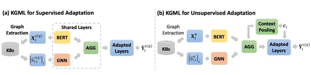 上图是 KGML 框架在有监督和无监督适应的设置。ACG 代表知识融合的聚合器