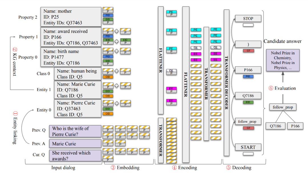 作者基于 Transformer 的模型将类似 JSON 的结构作为输入,使我们能够轻松地合并知识图和对话上下文。这种结构化输入被转换为嵌入列表,然后馈送到标准注意力层。