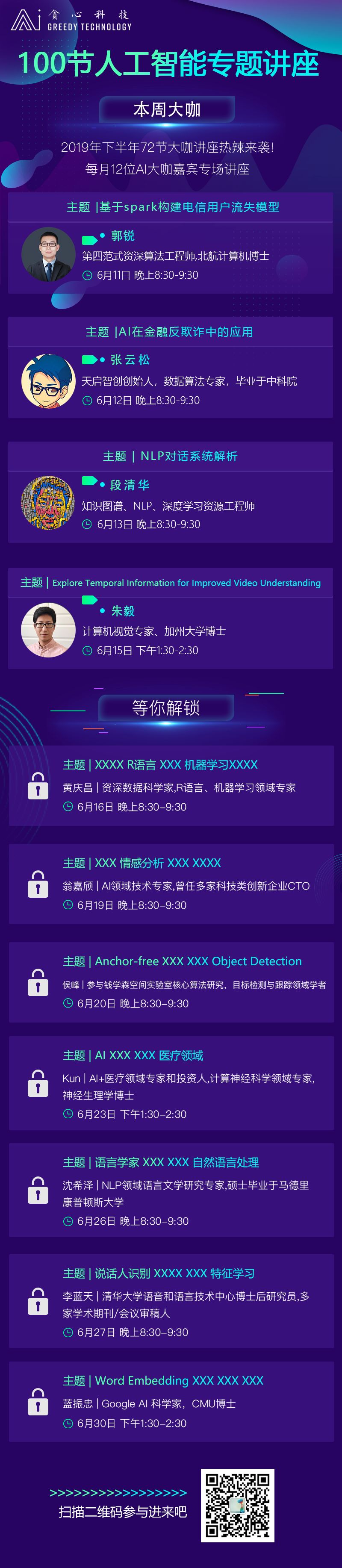 我们是谁?我们是一家专注于人工智能领域的在线教育公司,由一群有情怀的硅谷科学家来创办。我们提供最专业的AI课程以及每月4-5期的免费AI类公开课。关注此公众号(“贪心科技”)可以获得相关的信息。