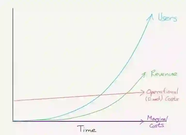 而可扩展性的实现前提是巨大且可能血本无归的资本开支,很少有人能够独立承担。VC 们看中了潜在的巨大收益,愿意把钱投给这种先花大钱搞开发,然后利用最小的边际成本快速扩张,实现 scalability 的商业模式。