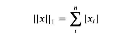 根据 LP 范数的定义我们可以很轻松的得到 L1 范数的数学形式: