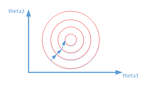 加速模型收敛:标准化后,最优解的寻优过程明显会变得平缓,更容易正确的收敛到最优解。如下图所示: