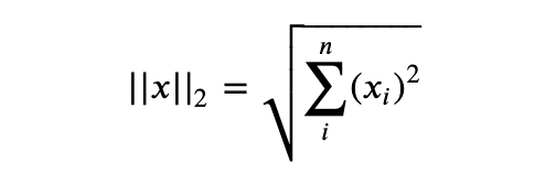L2 范数是最熟悉的,它就是欧几里得距离,公式如下: