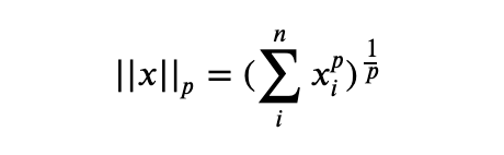 范数简单可以理解为用来表征向量空间中的距离,而距离的定义很抽象,只要满足非负、自反、三角不等式就可以称之为距离。LP 范数不是一个范数,而是一组范数,其定义如下: