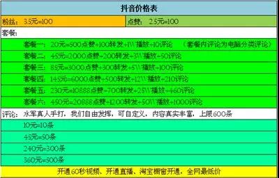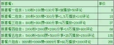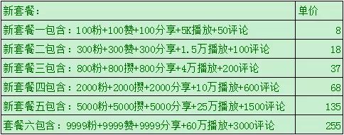 从以上价目表可以看出,点赞、评论、粉丝各类套餐琳琅满目,价格从几元到上百元不等。