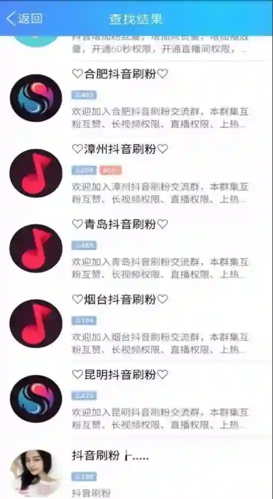 抖音刷粉已成为一个偏门生意。在百度、淘宝、QQ等软件中,只要在搜索栏中搜索“抖音刷粉”4个字,就能冒出无数条信息。