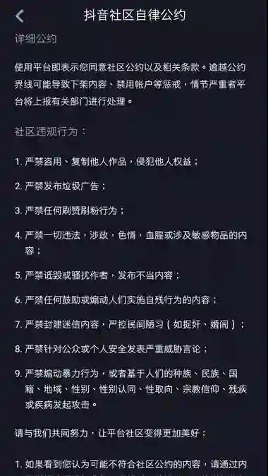 抖音社区的自律公约第三条为:严禁任何刷赞刷粉行为。