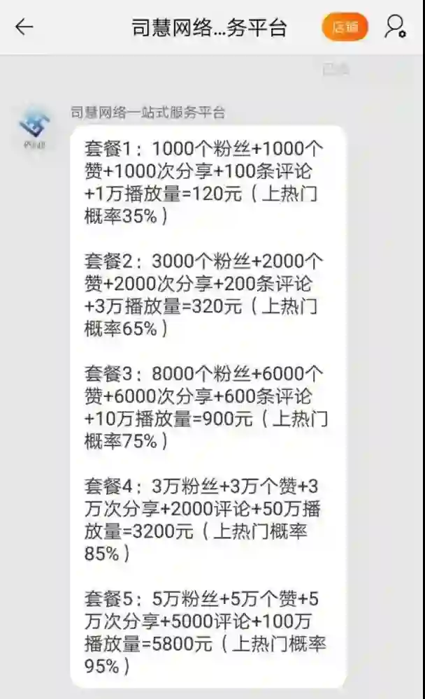 司慧网络在网店宣传中表示,目前在做抖音类的平台大概有几十家,而这几十家平台里边大多数是属于“代理倒卖”,而自身平台是专业的刷粉平台,能保障账号安全。其除了能为抖音号刷粉以外,还能为微博、淘宝直播刷粉。