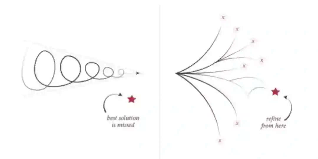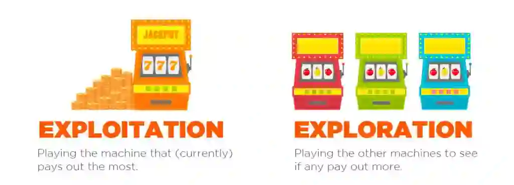 Exploration:选择现在不确定的⼀些⽅案,但未来可能会有⾼收益的方案。