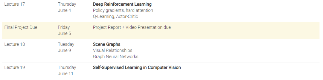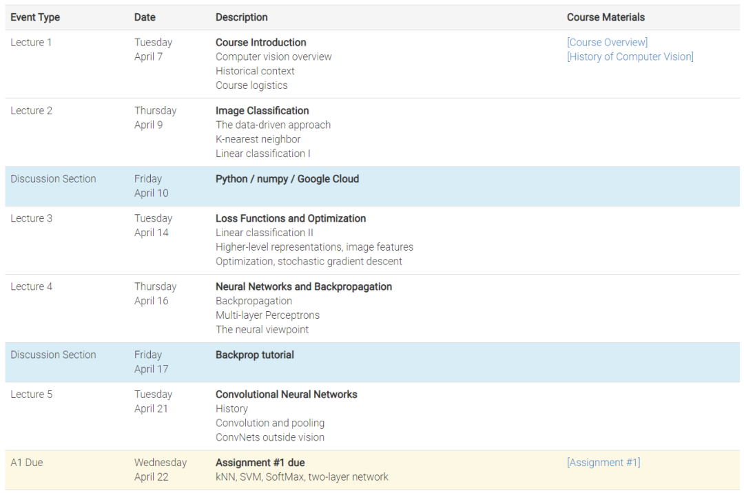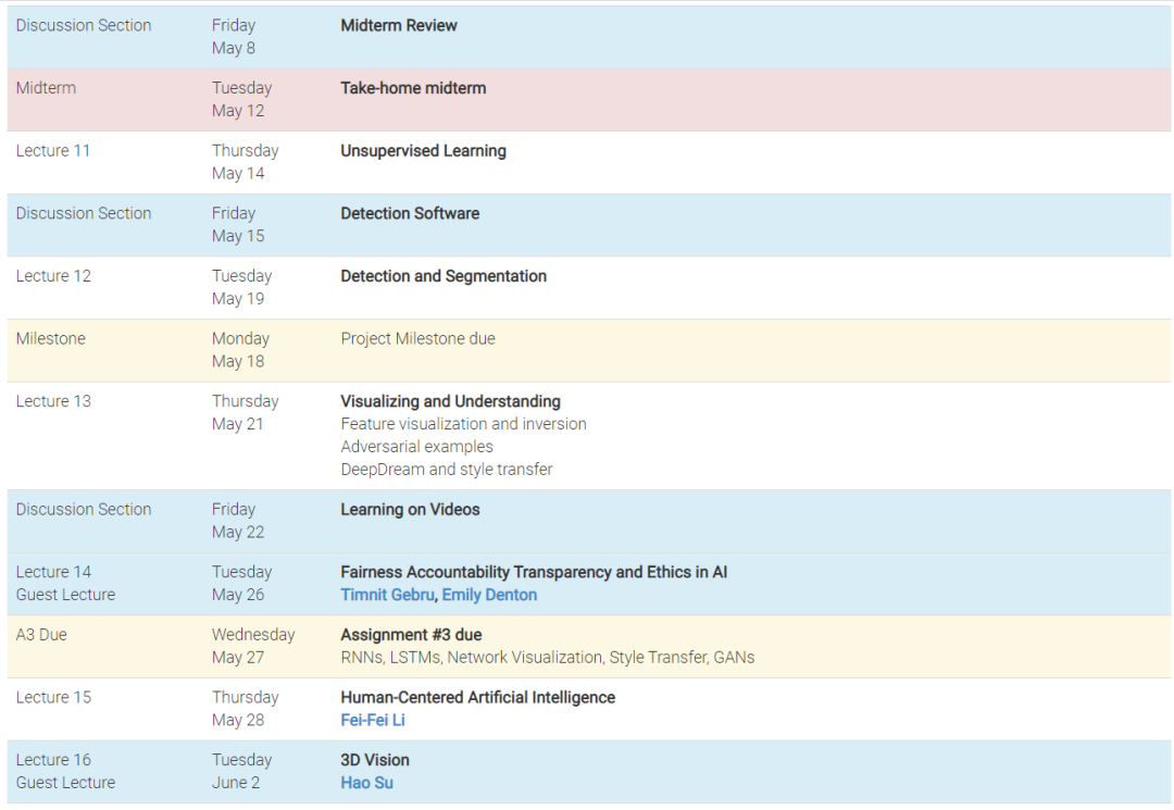 在本课程中,学生将学习如何实现、训练和调试自己的神经网络,并对计算机视觉的前沿研究有详细的了解。我们将涵盖学习算法,神经网络架构,和实际工程技巧的训练和微调网络的视觉识别任务。