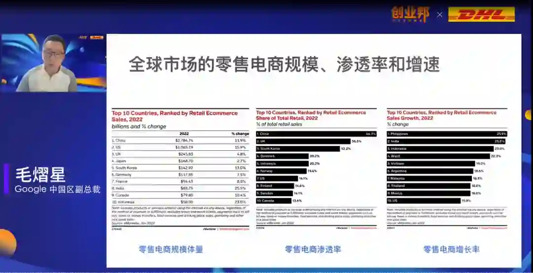 4月28日的创业邦&DHL峰会上,创业邦总编辑黄翔通过创业邦旗下睿兽分析平台,详细分析了跨境电商火热背景下的新机会。