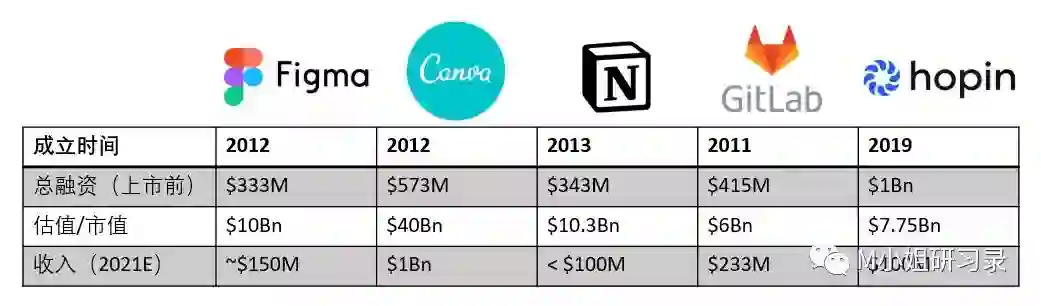 在风投机构a16z和openview的“疯狂”推荐下,一级市场逐渐认可了PLG的模式:Figma, Notion, Canva, Airtable等公司目前都已到达超百亿美金的估值。