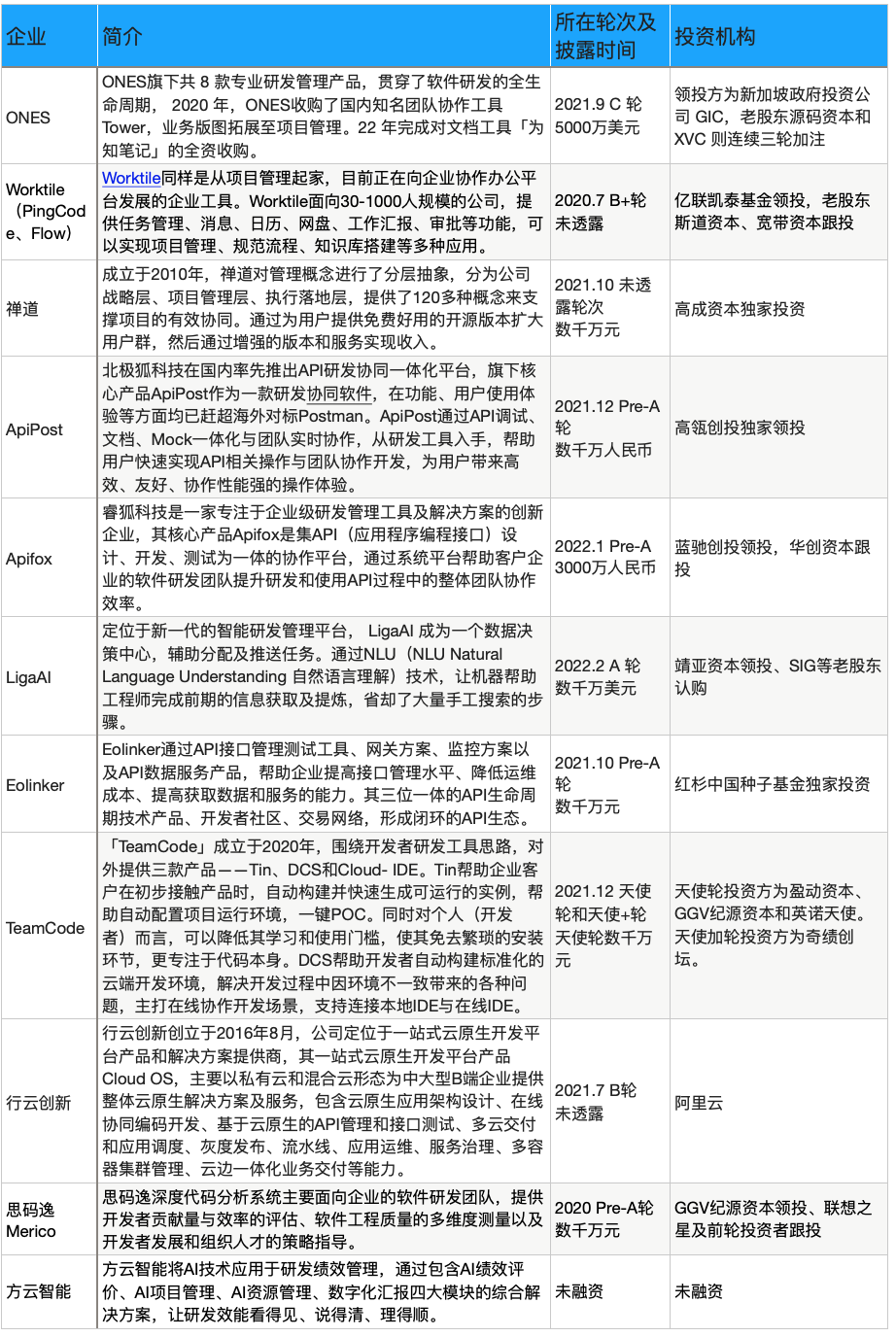 除ONES外,其他去年完成融资的企业规模都比较小,36氪尝试挖掘其中原因,姚嘉的分析是:“这个市场现在规模相对较小,企业们的营收也不算高,结合过往的投资经验,我们总结可能是研发人员本身就很习惯于英文界面的软件,相比设计协同,这个领域的替代门槛会更高。”