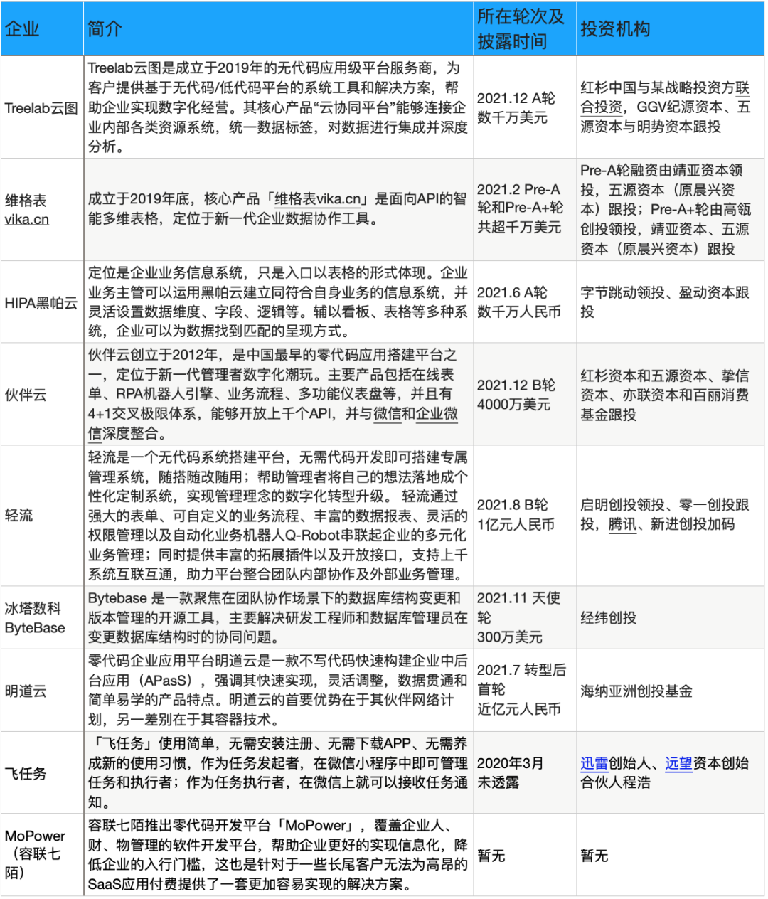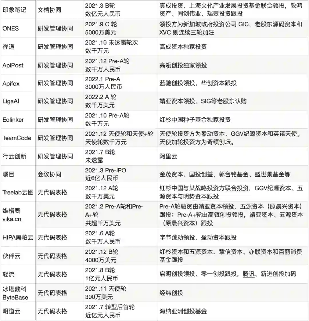 2021年,低代码领域融资不断,维格表、伙伴云、轻流均在一年内完成2轮融资。
