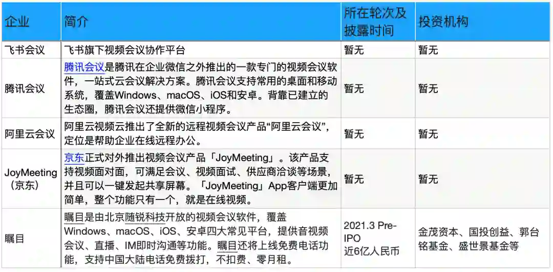 20年1月,腾讯会议宣布最多支持人数从100人升级至300人,同年2月,飞书会议上线,并称其支持100方实时视频会议。4月,阿里云会议上线时称最大可以支持500人同时在线。