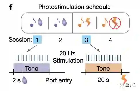 过程很简单,进行音调-蔗糖/足底电击实验,就是教小鼠将一个音调与蔗糖(奖励学习)或电击(惩罚学习)联系起来。