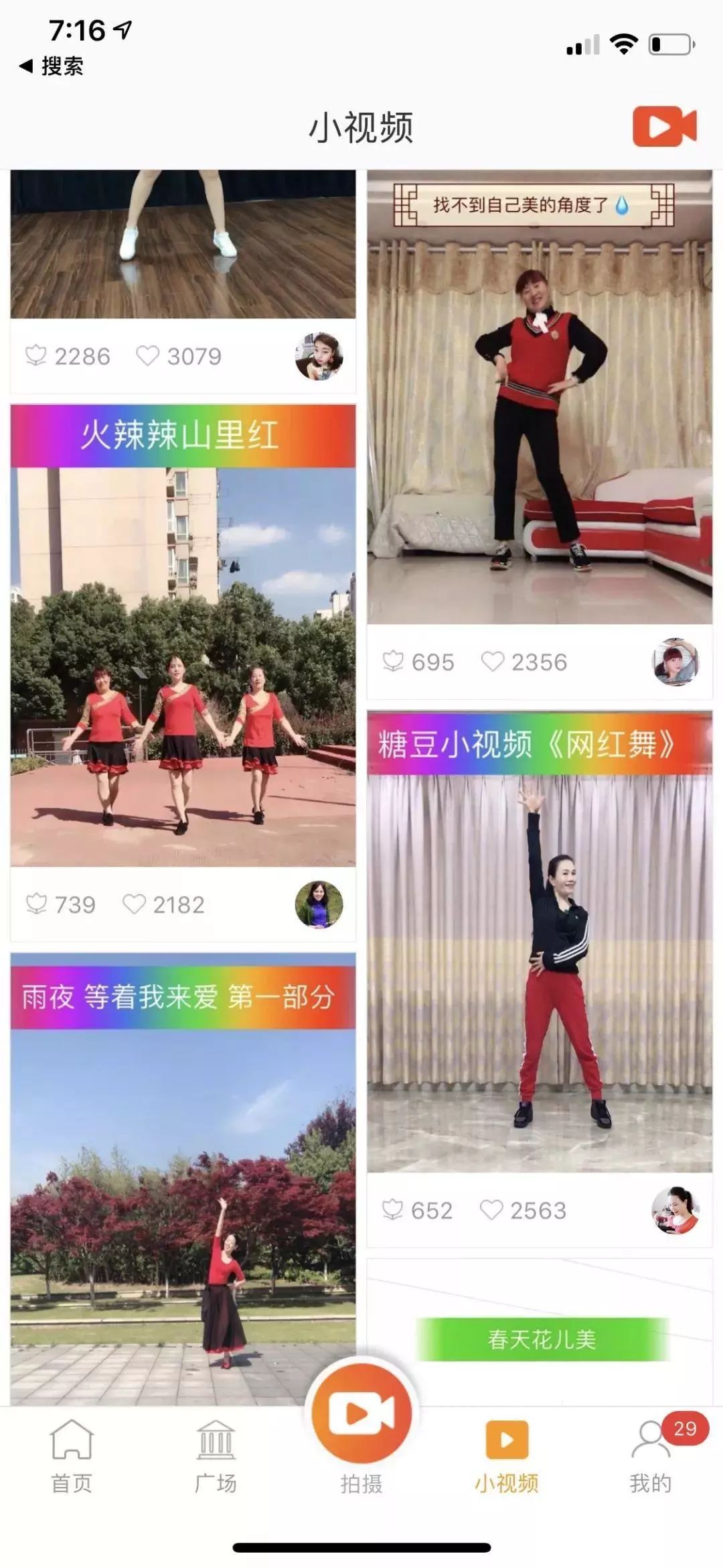 糖豆中老年的短视频+图文社区,除了首页有广场舞姐姐的PGC、广场有酷似朋友圈的图文、还有像极了快手的小视频。