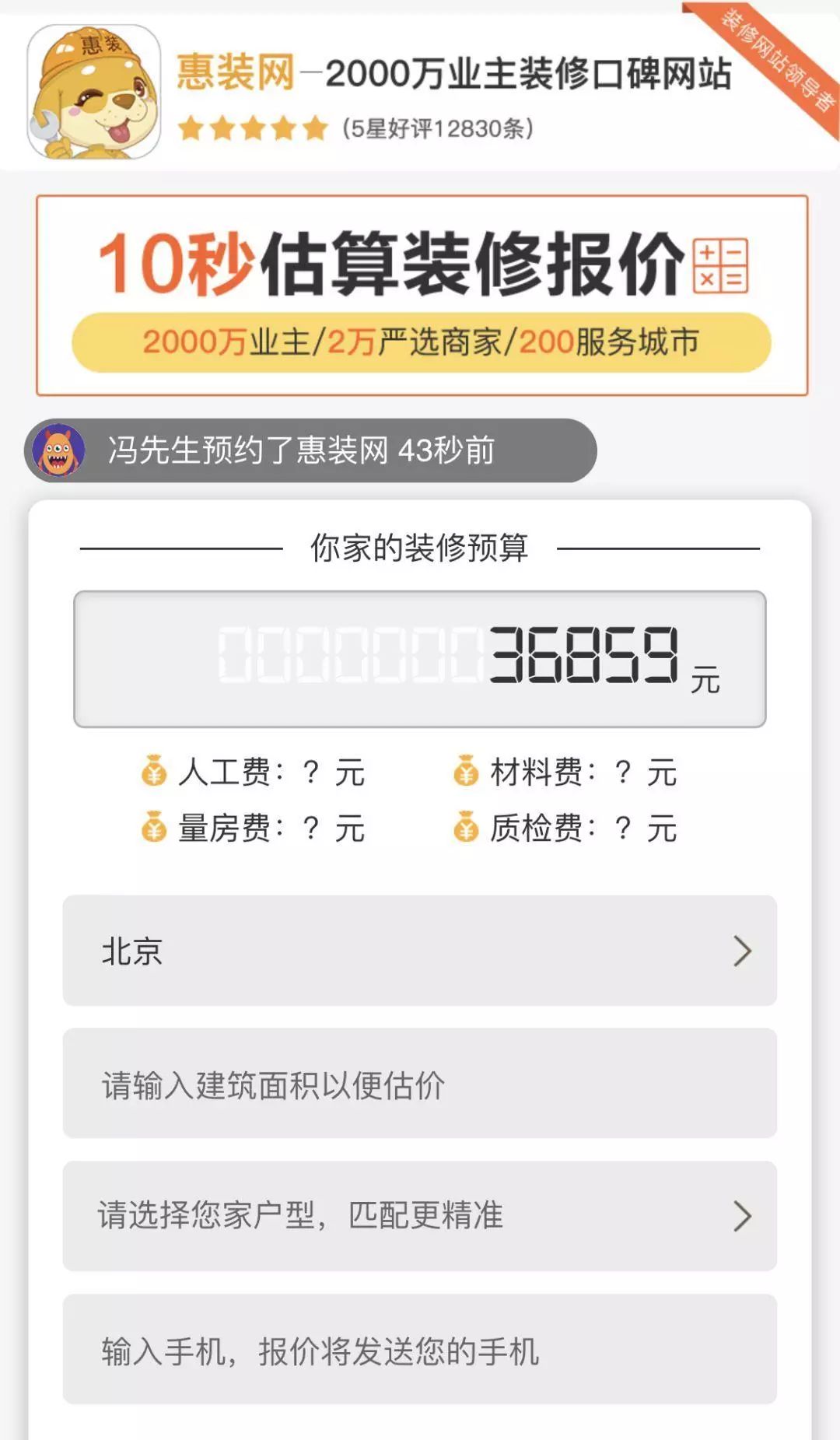 目前最大突破点就是信息流广告,我随手一刷就能刷到首页第一屏的广告,例如:这个“惠装网-装修口碑网站”的广告。