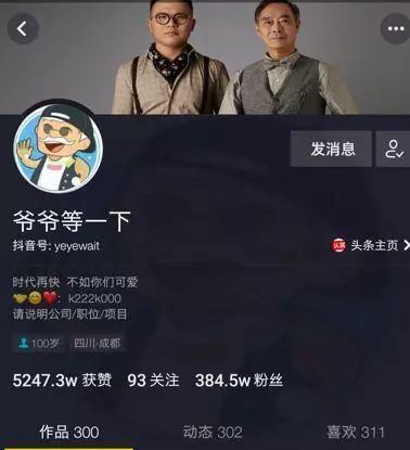 比如:386万粉专门采访老人的账号“爷爷等一下”。