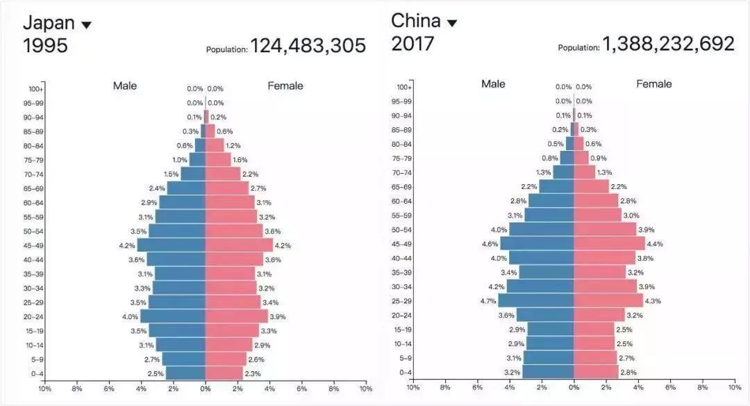 其实中国银发经济最好的参考者就是日本,2017年的中国人口结构同1995年的日本高度相似。