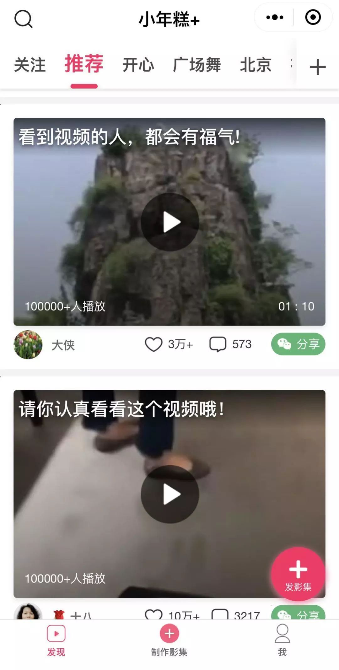 中老年本来其实找不到小程序的入口,但是群里有好看的图片和好笑的视频,莫名其妙就点了进去,点完了就开始分享——在用户不知不觉的情况下,小年糕就完成了一次中老年裂变。