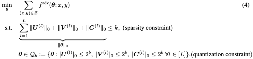 现在我们从另一个角度,看看怎样统一模型紧凑性与鲁棒性,怎样联合不同的压缩方法。也就是说,我们要保证压缩过后的模型具有足够小,且该模型还能抵御来自于对抗样本的攻击。