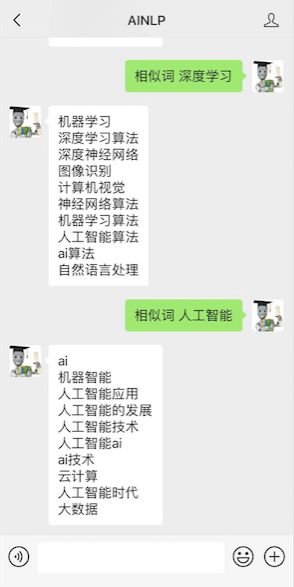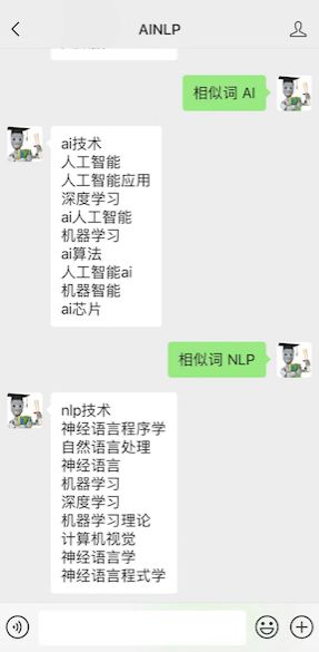 输入"相似词 AI"、"相似词 NLP"会得到: